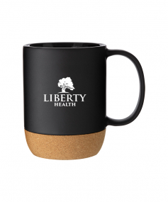 13 oz stoneware: matte color out / gloss color in with cork baseHand wash recommended. Do not microwave. Complies with FDA, Prop 65. 4.625" H x 5" W