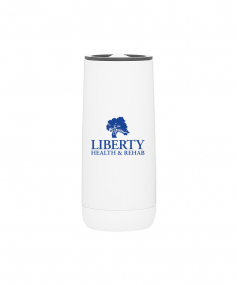 16.9 oz double wall 18/8 stainless steel tumbler with vacuum insulation, push-on lid, matching magnetic swivel closure, and rubberized base. Individual gift box. Hand wash recommended. Do not microwave. Complies with FDA, Prop 65. 7.125" H x 3.125" W
