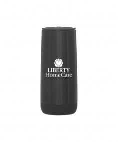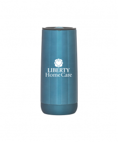 16.9 oz double wall 18/8 stainless steel tumbler with vacuum insulation, push-on lid, matching magnetic swivel closure, and rubberized base. Individual gift box. Hand wash recommended. Do not microwave. Complies with FDA, Prop 65. 7.125" H x 3.125" W
