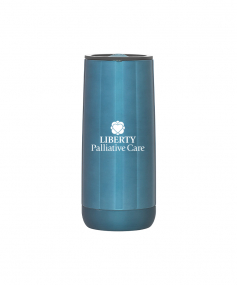 16.9 oz double wall 18/8 stainless steel tumbler with vacuum insulation, push-on lid, matching magnetic swivel closure, and rubberized base. Individual gift box. Hand wash recommended. Do not microwave. Complies with FDA, Prop 65. 7.125" H x 3.125" W