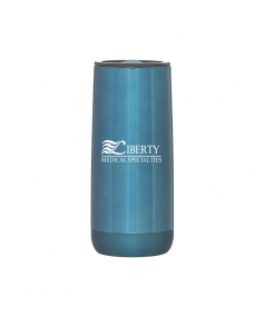 16.9 oz double wall 18/8 stainless steel tumbler with vacuum insulation, push-on lid, matching magnetic swivel closure, and rubberized base. Individual gift box. Hand wash recommended. Do not microwave. Complies with FDA, Prop 65. 7.125" H x 3.125" W