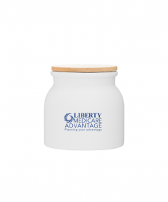 16.9 oz stoneware: matte white out / glossy white in with push-on bamboo lid; Hand wash recommended; Microwave safe with non-metallic imprint; 4 3/16 h x 4 3/16 (w/handle) w ; 500mL.