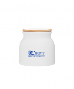 16.9 oz stoneware: matte white out / glossy white in with push-on bamboo lid; Hand wash recommended; Microwave safe with non-metallic imprint; 4 3/16 h x 4 3/16 (w/handle) w ; 500mL.