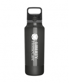 25 oz double wall 18/8 stainless steel thermal bottle with copper vacuum insulation, threaded one-touch push-button lid, locking mechanism, carrying handle, and rubberized base - patent pending - gift box included; Hand wash recommended; Do not microwave; 11 h x 3 w ; 739mL.