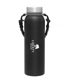 32 oz double wall 18/8 stainless steel thermal bottle with copper vacuum insulation, insulated stainless steel threaded lid, silicone ring, removable strap with buckles, removable clasps, and powder coated finish. Individual gift box. Hand wash recommended. Do not microwave. Complies with FDA, Prop 65. 11" H x 3.1875" W