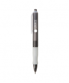 Wide body retractable gel pen with rubber grip. Ferrule and plunger with natural clip and grip. Protective ballpoint covering included. High quality Gel ink. 5 3/4" L x 15/32" Diameter.