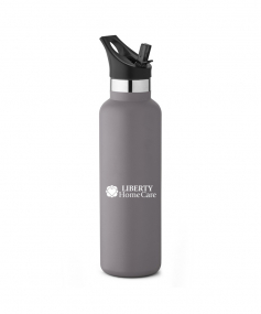 20 oz. Narrow-mouth vacuum-insulated bottle. Features a flip-top straw lid with ergonomic top finger loop. Keeps contents cold for 24 hours. Powder coat finish with copper lining, double wall 18/8 stainless steel, proprietary BPA-free insulated lid. Bottle comes with both screw-on lid and straw lid. 11" H x 2 7/8" Diameter.