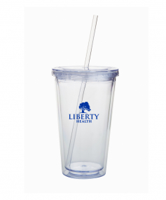 This high-quality 18 oz. sweatproof tumbler with double-wall insulation is perfect for your cold beverages. The screw-on lid comes with a removable drinking straw.