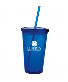 This high-quality 18 oz. sweatproof tumbler with double-wall insulation is perfect for your cold beverages. The screw-on lid comes with a removable drinking straw.