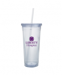 This high-quality 24 oz. sweatproof tumbler with double-wall insulation is perfect for your cold beverages. The screw-on lid comes with a removable drinking straw.