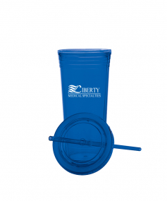 This high-quality 24 oz. sweatproof tumbler with double-wall insulation is perfect for your cold beverages. The screw-on lid comes with a removable drinking straw.