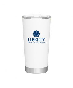 20 oz double wall 18/8 stainless steel thermal tumbler with vacuum insulation, and clear acrylic push-on swivel lid. Hand wash recommended. Do not microwave. Complies with FDA, Prop 65. 7.125" H x 3.75" W