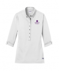 Break away from the ordinary in this button-down style polo that features cuffed 3/4 sleeves.