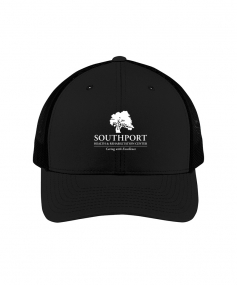 Retro trucker cap with 100% polyester mesh back panel.